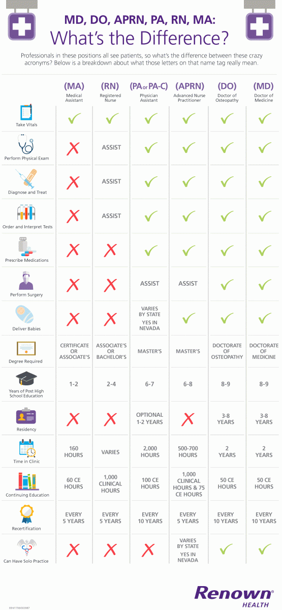 Learn more about the differences between doctors, APRNs, PAs and more with this handy infographic.
