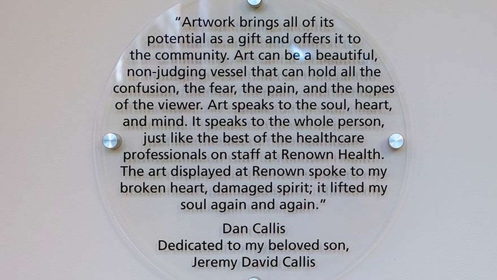 Driven by the transformative power of art, Dan made a heartfelt decision. He chose to honor Jeremy's memory by donating four of his own paintings to Renown.